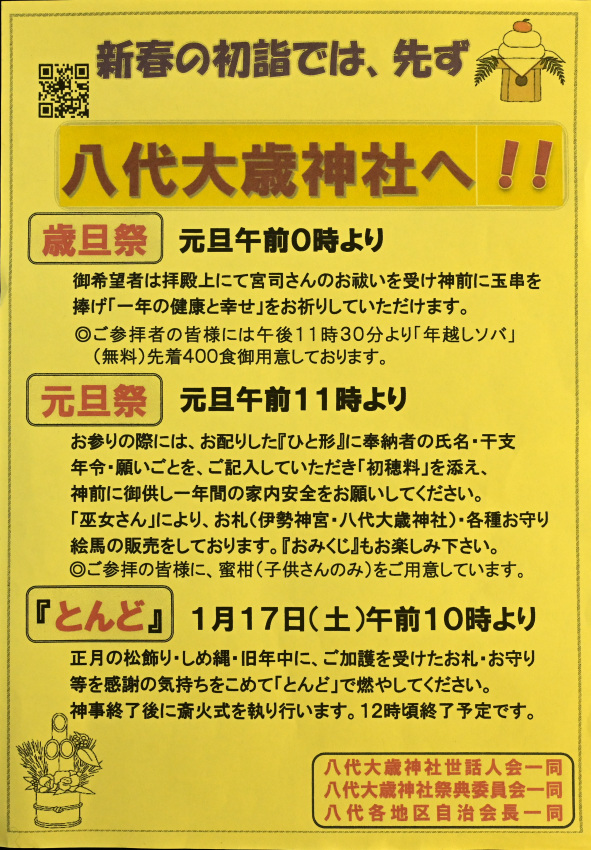 | むかし北八代に大歳社(おおとししゃ)があり、南八代にも短羽矢明神(たんばや)と大歳社が祀られていた。 |